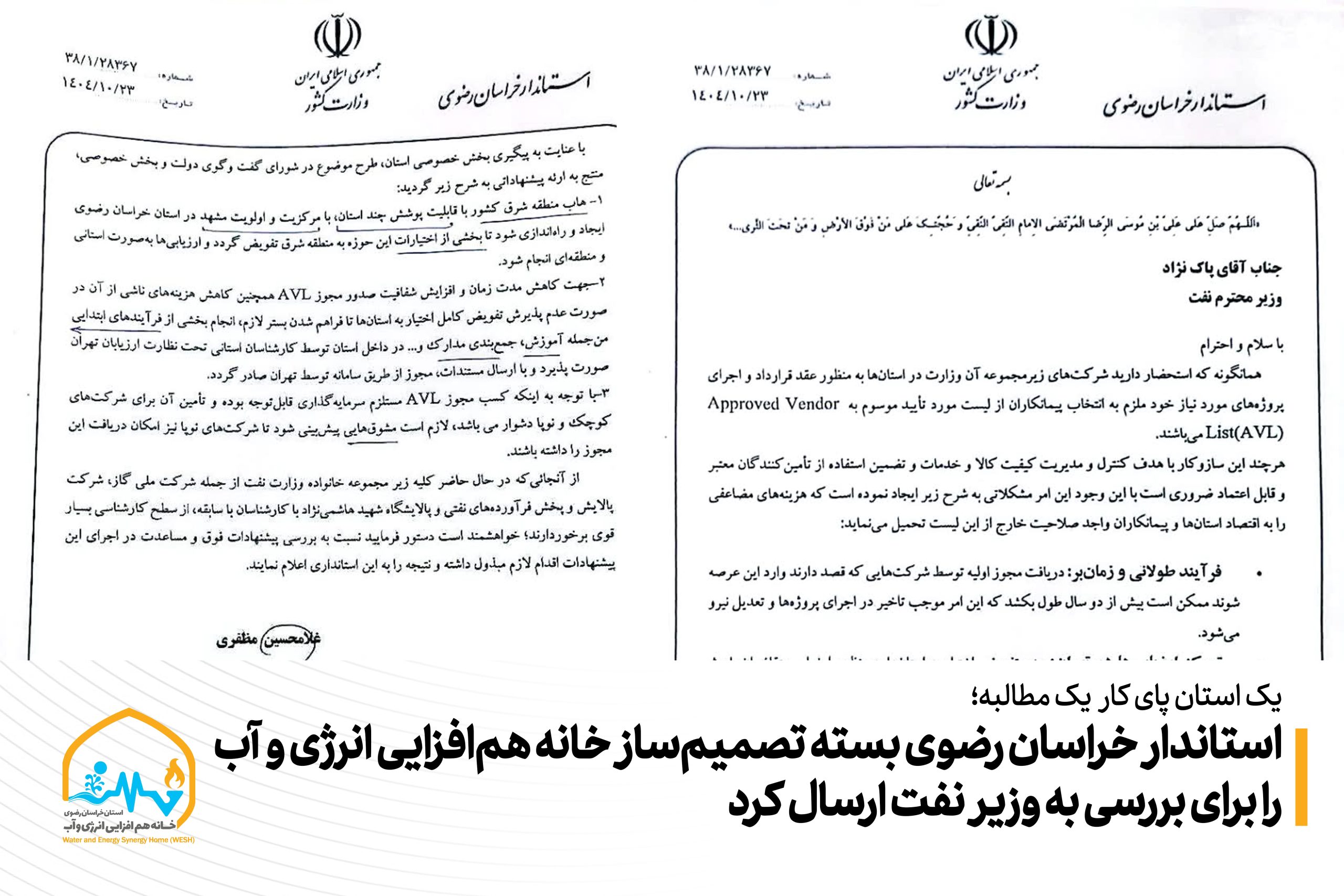 در این نامه، استاندار خراسان رضوی خواستار بررسی و اجرای سه راهکار اصلی پیشنهادی شده است: