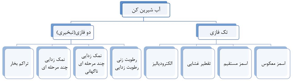 فرآیند نمکزدایی آبشور برای تولید آب شیرین به انرژی (گرمایی، مکانیکی یا الکتریکی) نیاز دارد. دستهبندی کلی این سیستمها در شکل1 نمایش داده شده است.