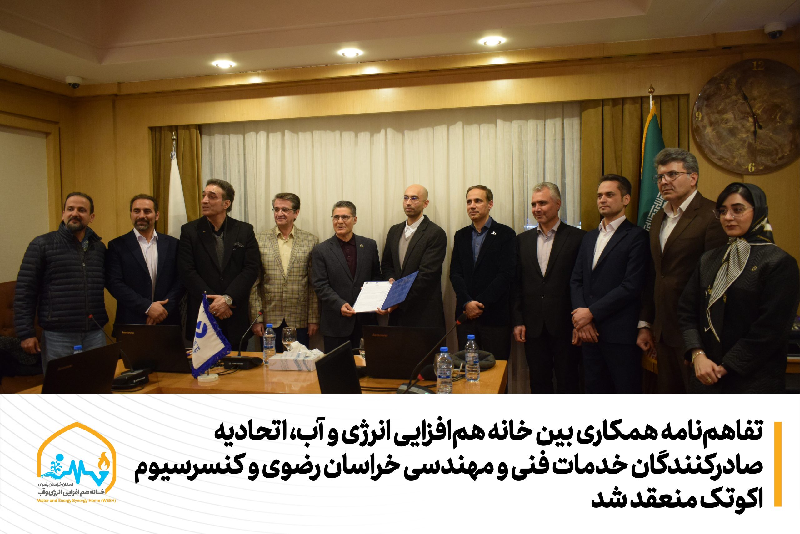 تفاهمنامه همکاری میان اتحادیه صادرکنندگان خدمات فنی و مهندسی خراسان رضوی، خانه همافزایی انرژی و آب و کنسرسیوم اکوتک با محوریت توسعه کسبوکارها و ورود حرفهای و امن به بازار بینالمللی با اتکا به توانمندی، دانش و تجربه طرفین منعقد شد. هدف اصلی این تفاهمنامه تسهیلگری در راستای رفع موانع و توانمندسازی شرکتهای فنی و مهندسی فعال در زنجیره تأمین انرژی و آب برای حضور در بازار بینالمللی و احصا چالشها و نیازهای بخش خصوصی، دولتی و جامعه نخبگانی در حوزه صادرات خدمات فنی و مهندسی است.